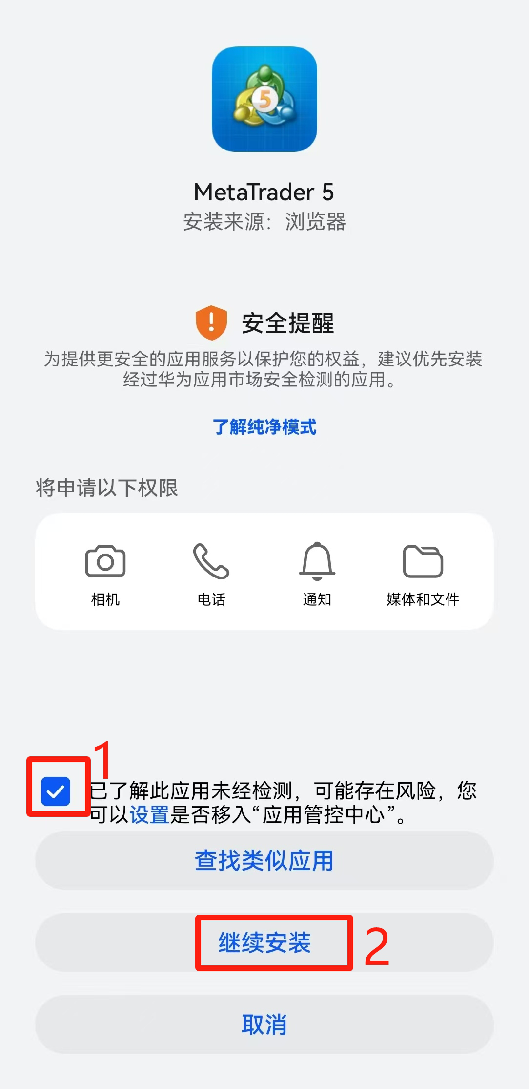 1.点击>> Android版本下载 链接,下载MT5的APK安装文件。