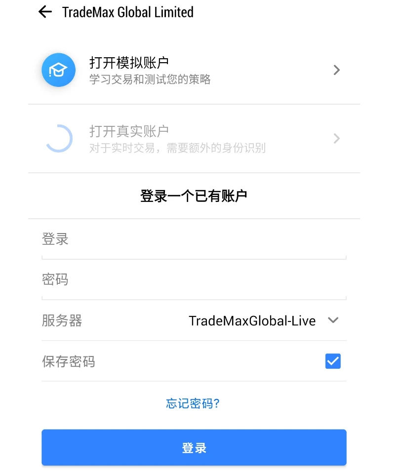 4.在上方输入服务器“TradeMaxGlobal”,并选择“TradeMax Global LMITED”